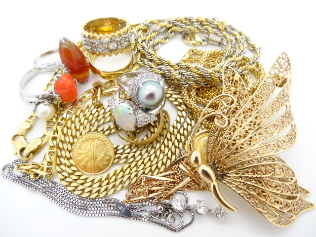 歪んだ指輪、切れたネックレス、片方だけのピアス・イヤリング、留め具が壊れたブレスレット、金歯、金杯、銀杯等どんな状態でもお買取りいたします。金・プラチナ・銀製品であれば置物や工業製品等もお買取りいたします。
